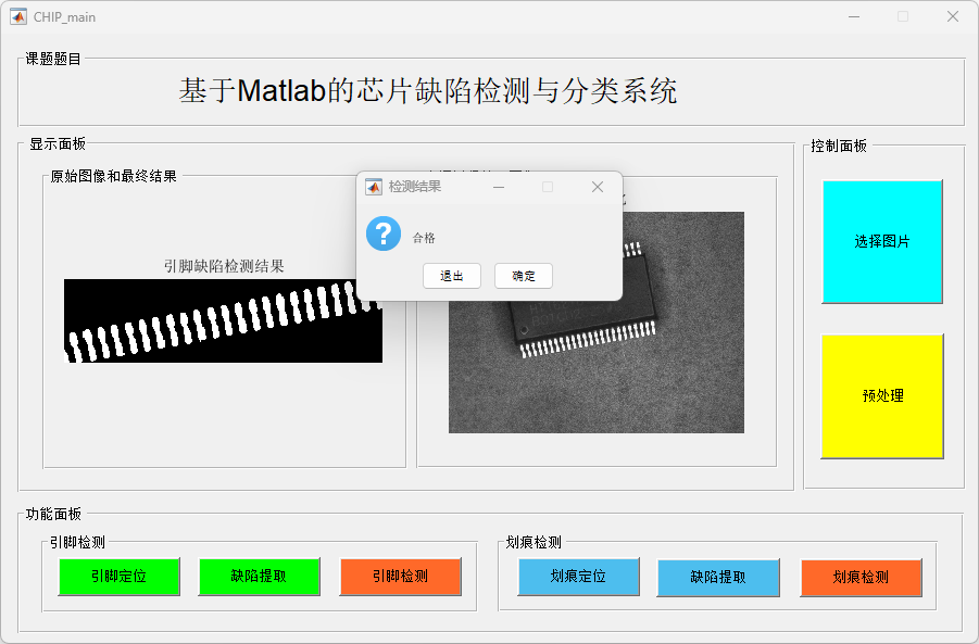 系统判定芯片不存在缺陷,并弹出“合格”提示框确认检测结果。