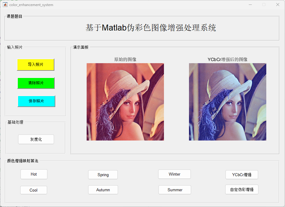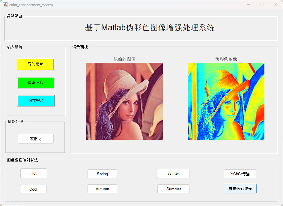 本系统通过图形用户界面(GUI)提供了友好的操作体验,使得用户能够方便地加载、处理并保存图像。实验结果表明,所提出的颜色增强方法在多个领域(如图像处理、医学成像、科学可视化等)中均能显著提高图像的可视化效果,具有广泛的应用前景。