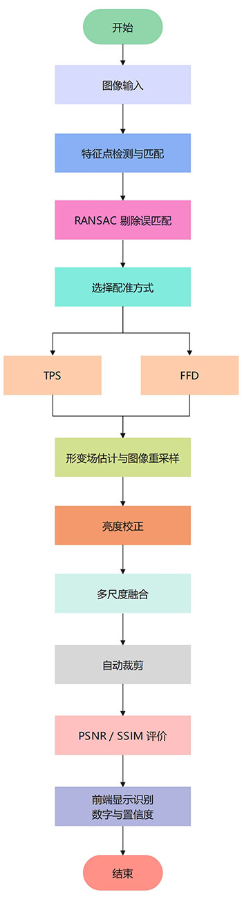 本系统采用特征匹配、非刚体配准与多尺度融合相结合的设计,实现了对输入图像的精确对齐与高质量拼接。