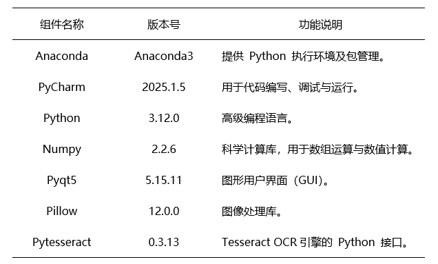 对本实验所需的各类软件及工具的基本信息进行了清晰汇总。