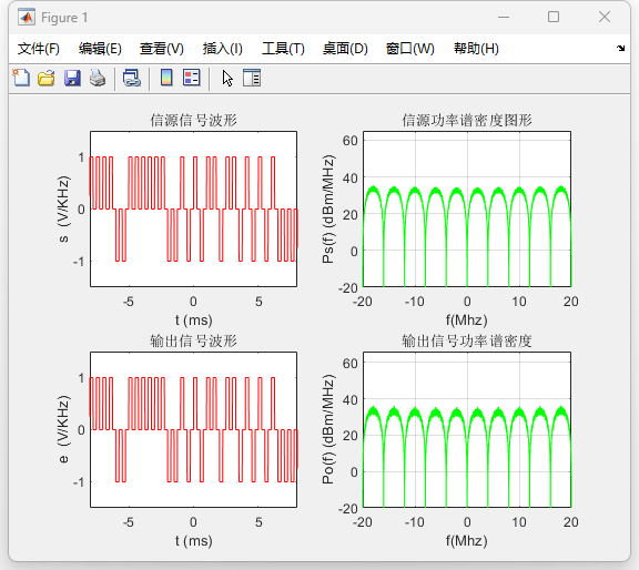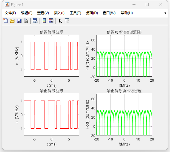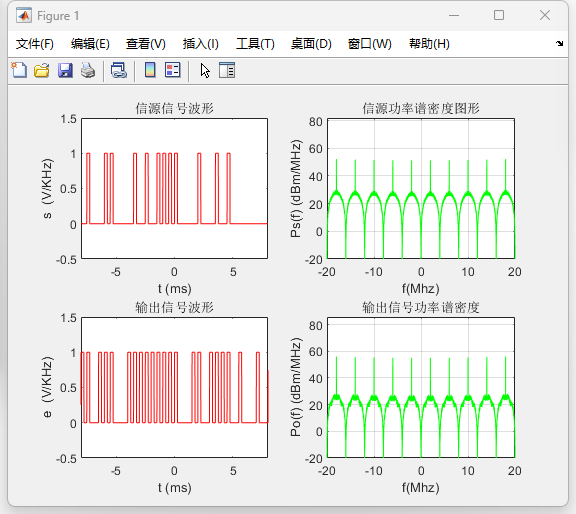 摘要:基带数字通信系统的频谱特性与误码性能是通信原理研究中的重要内容。为了分析不同基带码型在带限信道中的传输特性,本文基于 MATLAB 平台建立了基带数字通信系统的仿真模型,对单极性不归零码、双极性不归零码、单极性归零码和双极性归零码等典型基带信号进行了研究。