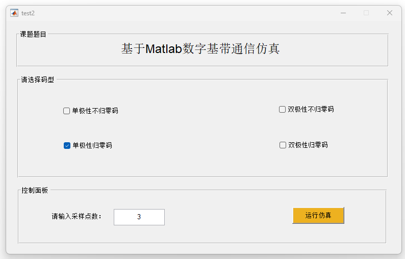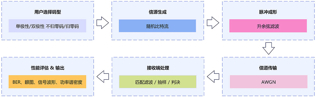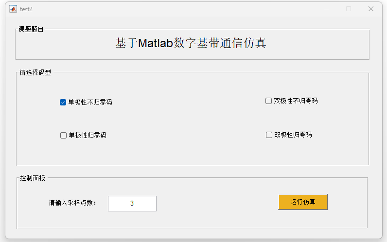 基带数字通信系统的频谱特性与误码性能是评价通信系统传输质量的重要指标。针对不同基带码型在带限信道中的传输特性问题,本文基于 MATLAB 仿真平台构建了基带数字通信系统模型,对单极性不归零码、双极性不归零码、单极性归零码以及双极性归零码等典型基带信号进行了系统研究。