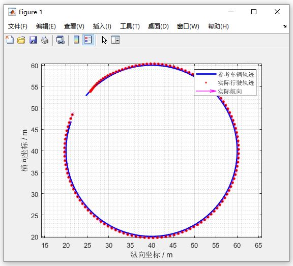 由图可知,采用 Stanley 控制算法后,车辆实际行驶轨迹能够较好地贴合参考圆形轨迹,整体跟踪误差较小,表明该算法具有良好的路径跟踪性能。