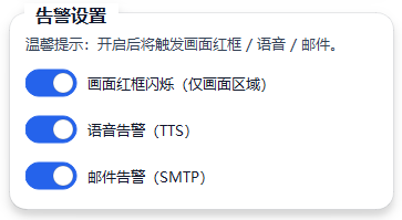 当跌倒事件被确认并触发报警后,为防止同一事件在短时间内被多次重复触发,系统进一步引入报警冷却机制。在冷却时间窗口内,即使检测结果仍持续为跌倒状态,系统也不会再次生成新的报警事件,从而避免报警信息的冗余输出。同时,考虑到实际监控环境中跌倒后人体姿态可能在短时间内出现一定程度的恢复或波动,本文设计了报警保持与延迟解除机制,使报警状态在触发后保持一段预设时间,仅在连续多帧检测结果恢复为正常状态后才解除报警显示。通过上述机制的协同作用,系统在保证报警响应及时性的同时,显著增强了报警决策的鲁棒性与稳定性,为后续的语音提示、邮件通知以及事件记录等功能模块提供了可靠的触发依据。