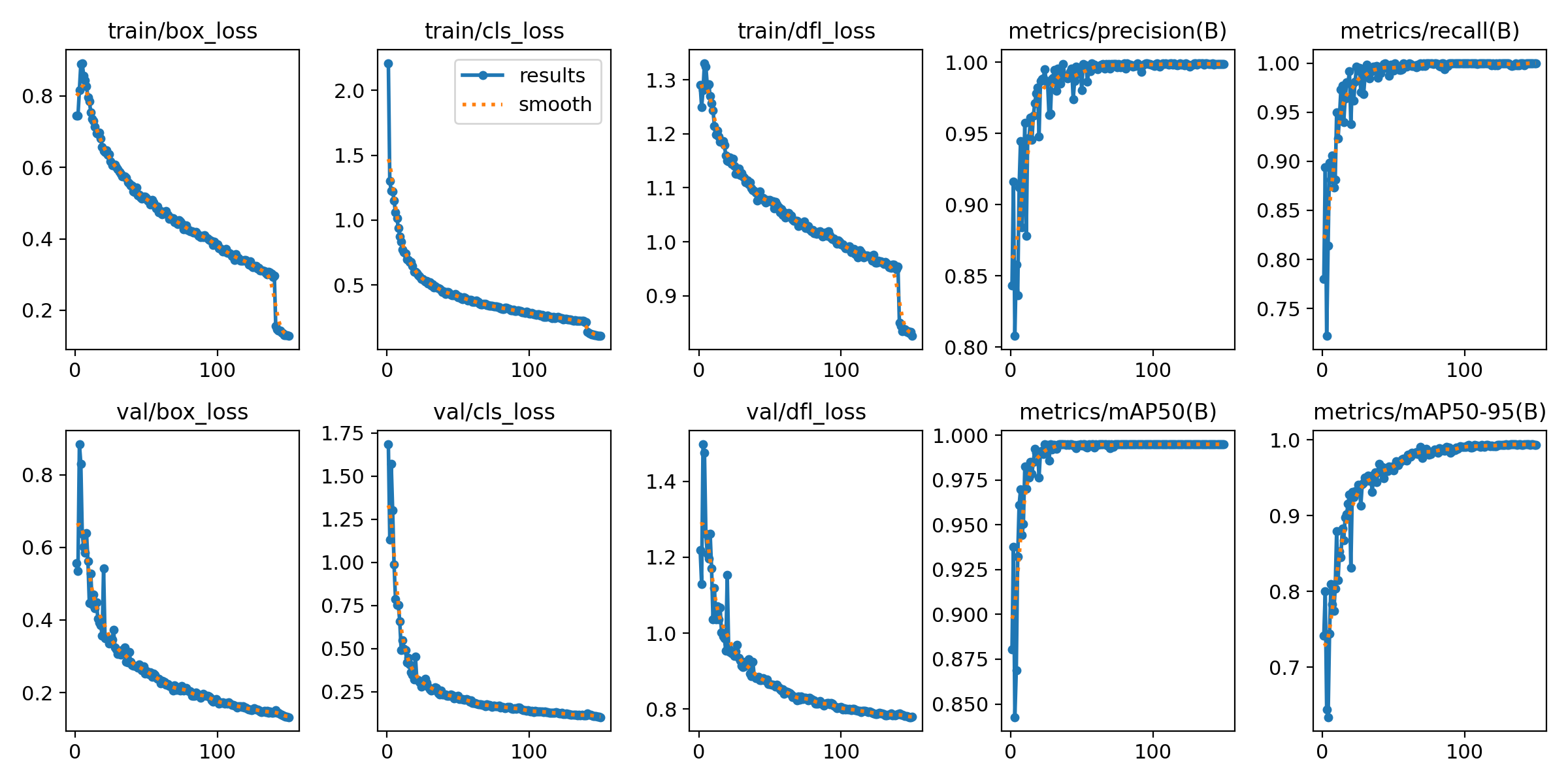 该图表明,随着训练轮次的增加,YOLOv11 模型在训练集与验证集上的各项损失函数均呈现出稳定下降并逐渐收敛的趋势,同时 Precision、Recall 及 mAP 指标持续提升并趋于稳定,说明模型训练过程收敛良好,未出现明显过拟合现象,整体检测性能稳定可靠。
