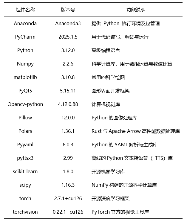 对本实验所需的各类软件及工具的基本信息进行了清晰汇总。