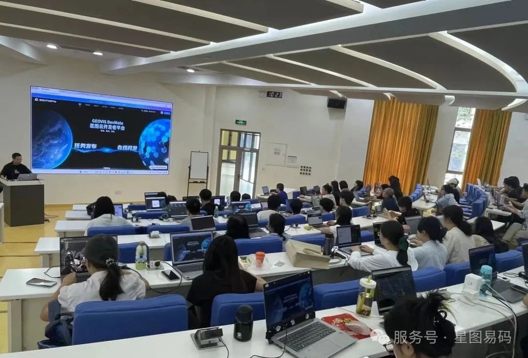 2025年6月20日,星图易码团队走进西安欧亚学院信息工程学院,成功举办了“星图云开发者平台(GEOVIS DevMate)产品宣讲与实操培训”。本次活动吸引了100多位信工学院师生参与,共同了解并体验了该平台在空间信息应用、数字孪生应用、IoT应用等开发领域的技术特点与实践价值。