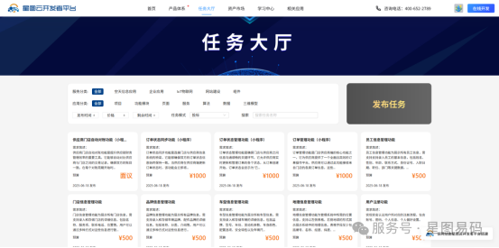 本次活动的亮点之一是星图云开发者平台官网最新上线的“任务大厅”功能的介绍。该板块通过任务连接供需双方,为企业和开发者提供一个开放和谐的合作生态,推动应用开发的创新和进步: