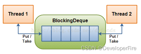 一个线程往里边放,另外一个线程从里边取的一个 BlockingQueue。