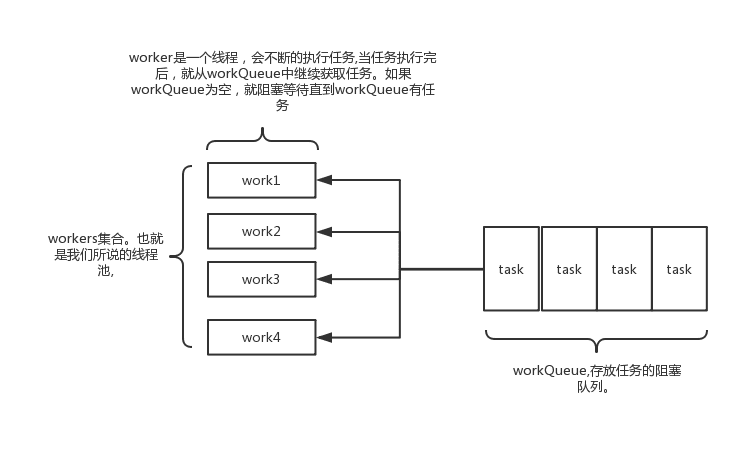 一个线程将会持续生产新对象并将其插入到队列之中,直到队列达到它所能容纳的临界点。也就是说,它是有限的。如果该阻塞队列到达了其临界点,负责生产的线程将会在往里边插入新对象时发生阻塞。它会一直处于阻塞之中,直到负责消费的线程从队列中拿走一个对象。 负责消费的线程将会一直从该阻塞队列中拿出对象。如果消费线程尝试去从一个空的队列中提取对象的话,这个消费线程将会处于阻塞之中,直到一个生产线程把一个对象丢进队列。