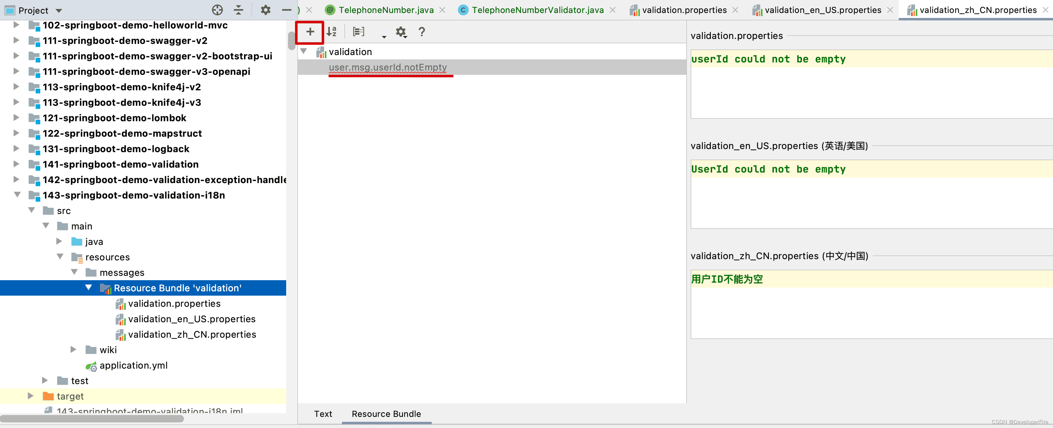 @NotEmpty(message = "{user.msg.userId.notEmpty}") // 这里