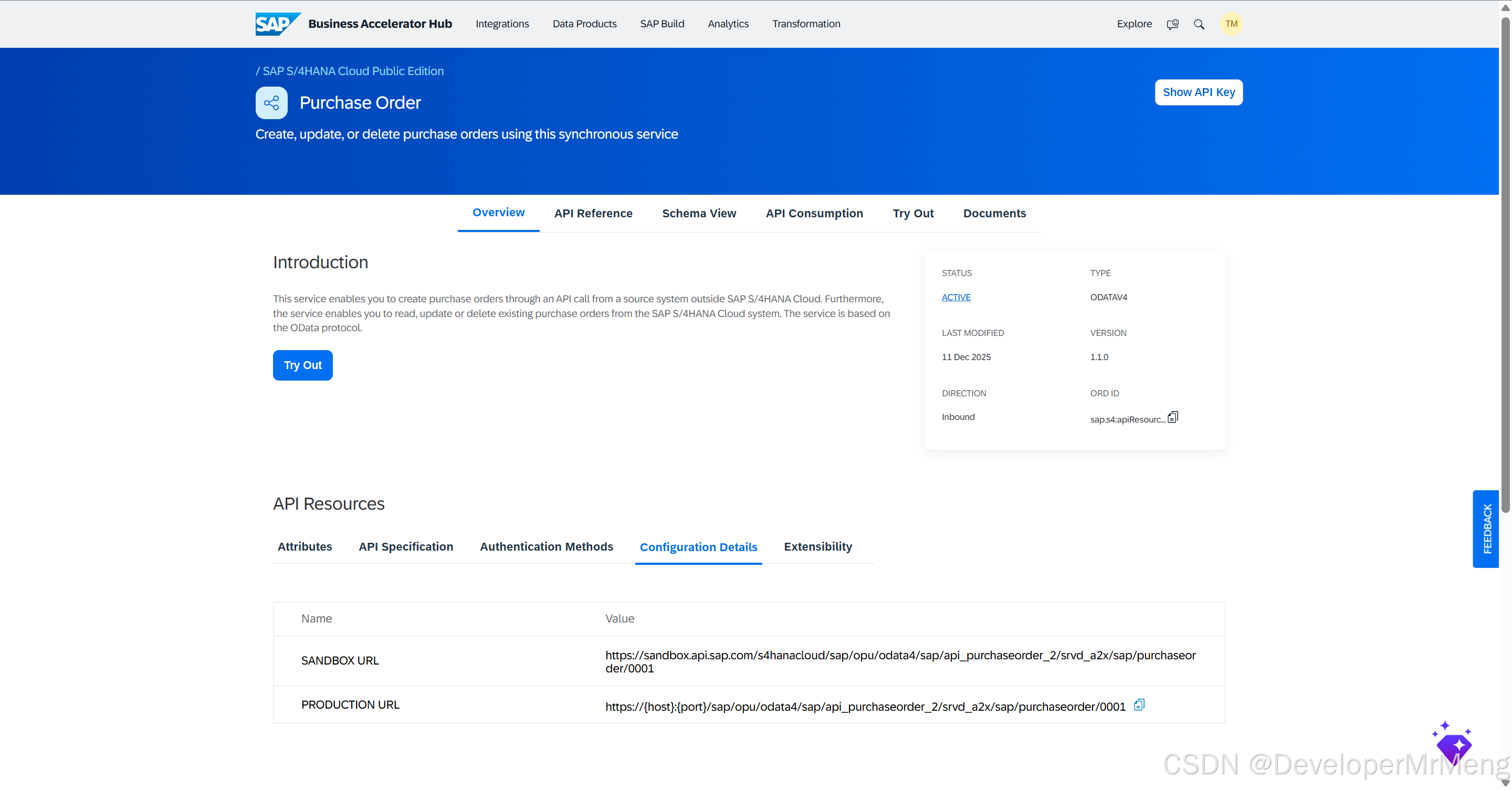 这里选择使用标准的采购订单的OData V4服务作为消费对象,也可以自行在api官方查找自己需要的标准OData服务:https://api.sap.com/