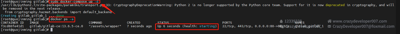 原文地址:http://www.CrazyDeveloper007.com/centos7-docker-deploy-gitlab/