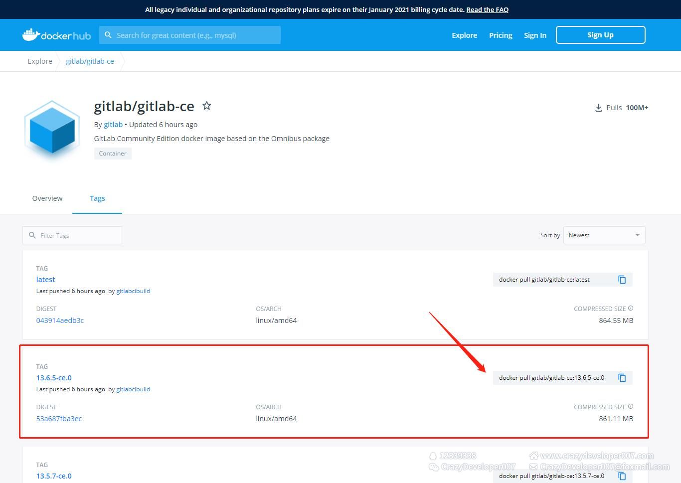 docker pull gitlab/gitlab-ce:13.6.5-ce.0