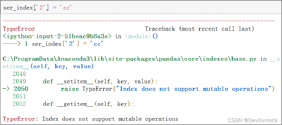 Pandas中的索引都是Index类对象,又称为索引对象,该对象是不可以进行修改的,以保障数据的安全。