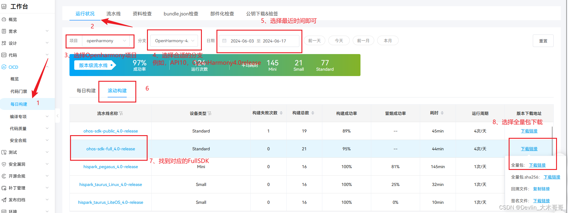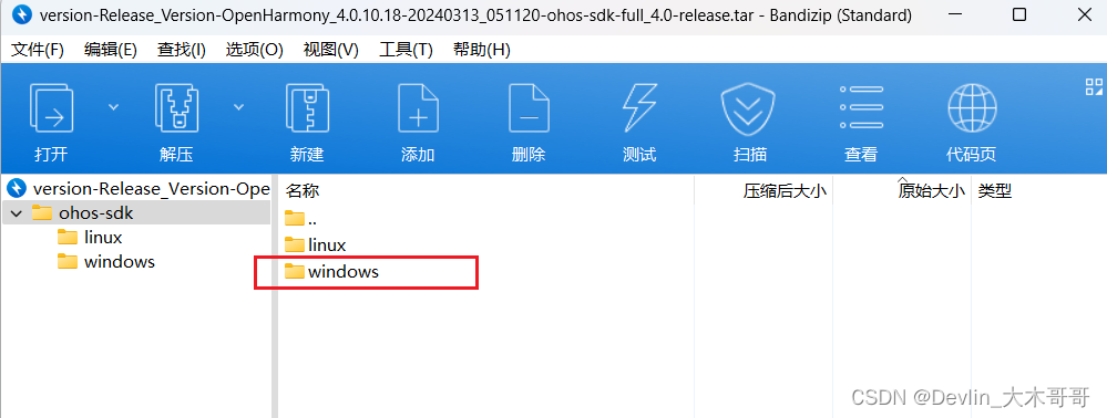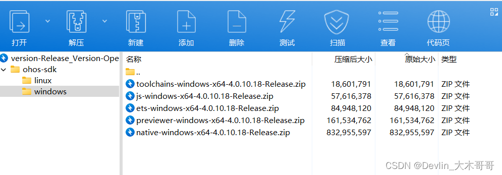 在每日构建下载相应的FullSDK,这里下载OpenHarmony4.0release对应的FullSDK(对应API10)。