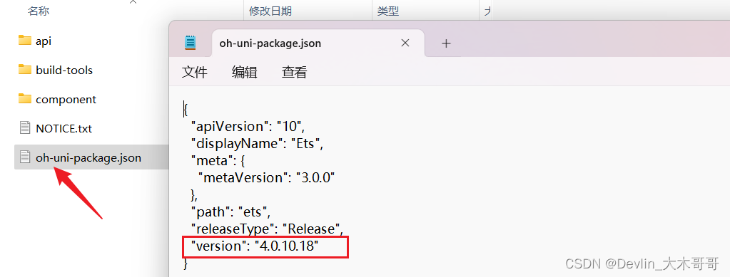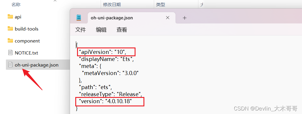 提醒:可以在解压的ets\oh-uni-package.json查看其对应的API版本