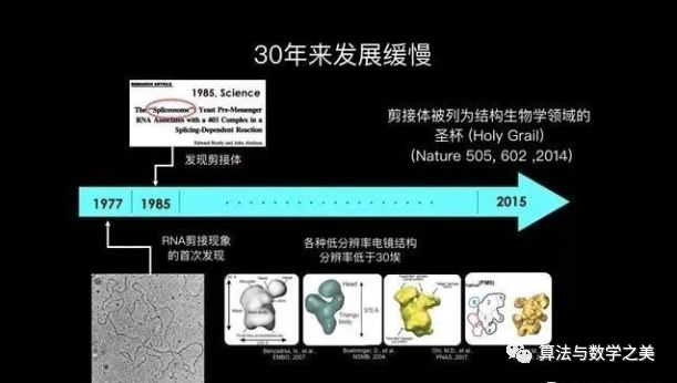 而我所做的课题是关于真核生物基因表达中很关键的一步——剪接。它的功能异常、突变,或丧失,都会导致疾病的产生。因为剪接体是一个巨大的动态分子机器,稳定性很不好,结构解析的难度高于RNA和核糖体,所以它一直是一个研究热点和难点。