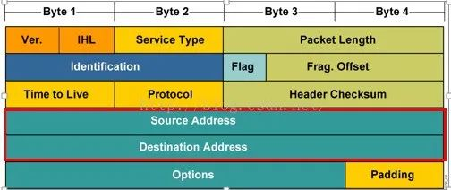 IP数据包:IP头部+TCP数据信息(IP头包括源和目标主机IP地址、类型、生存期等)