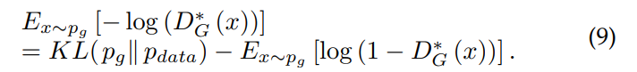 因此 E_(x~p_g)[-log(D*_G(x))] 等价于