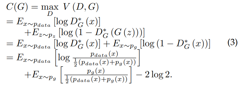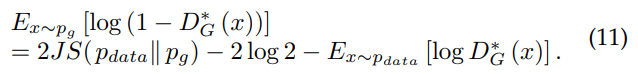 因此 E_(x~p_g)[log^(1 - D*_G(x))] 等价于