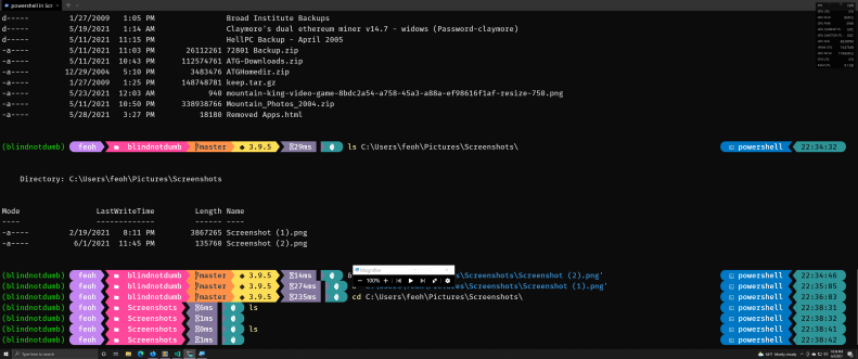 除了 UNIX shell 根本无法完成的对象管道和所需状态配置之外,现代 Powershell 还具有一些非常让人享受的功能,比如Oh My Posh(https://ohmyposh.dev/)可营造出非常舒适的工作环境。请看下面的截图: