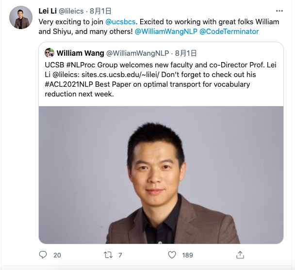最新的消息便是,字节跳动AI Lab总监李磊离职加入UCSB!
