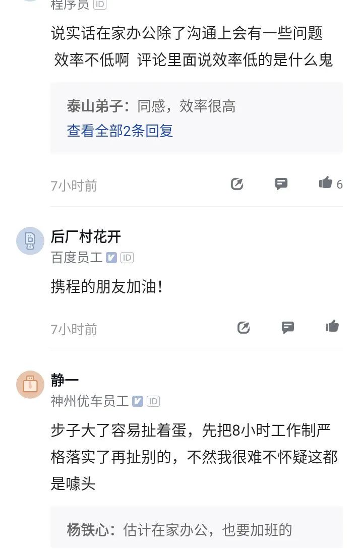 据悉,在此次试验完成后,携程将对“在家办公对员工绩效的影响、在家办公对团队项目进展的影响、在家办公的员工体验、感受、在家办公对于优秀人才的保留和吸引的影响”等数据进行监测和分析,在可行性得到验证后,该举措有望向更多员工开放。