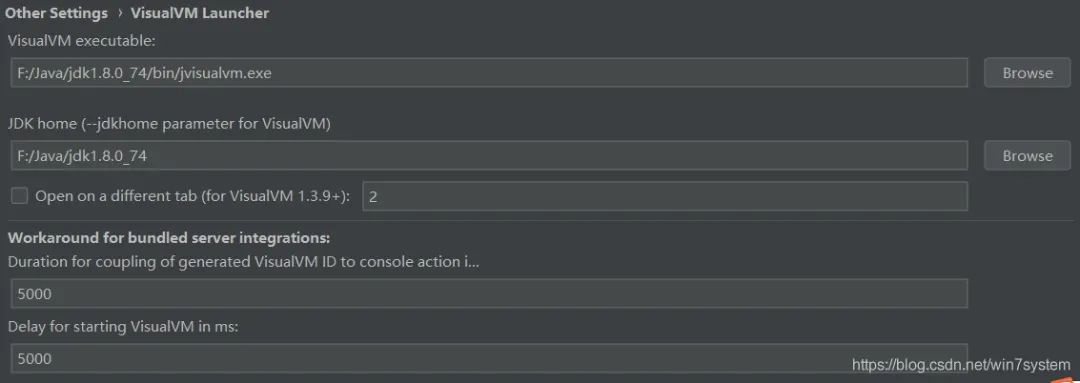 一般可用于在本地开发进行压力测试,性能测试之类的监控器,其他场景一般不推荐使用此模式启动,还会启动另外一个Visual vm窗口,这个窗口是JDK bin目录下的JvisualVM