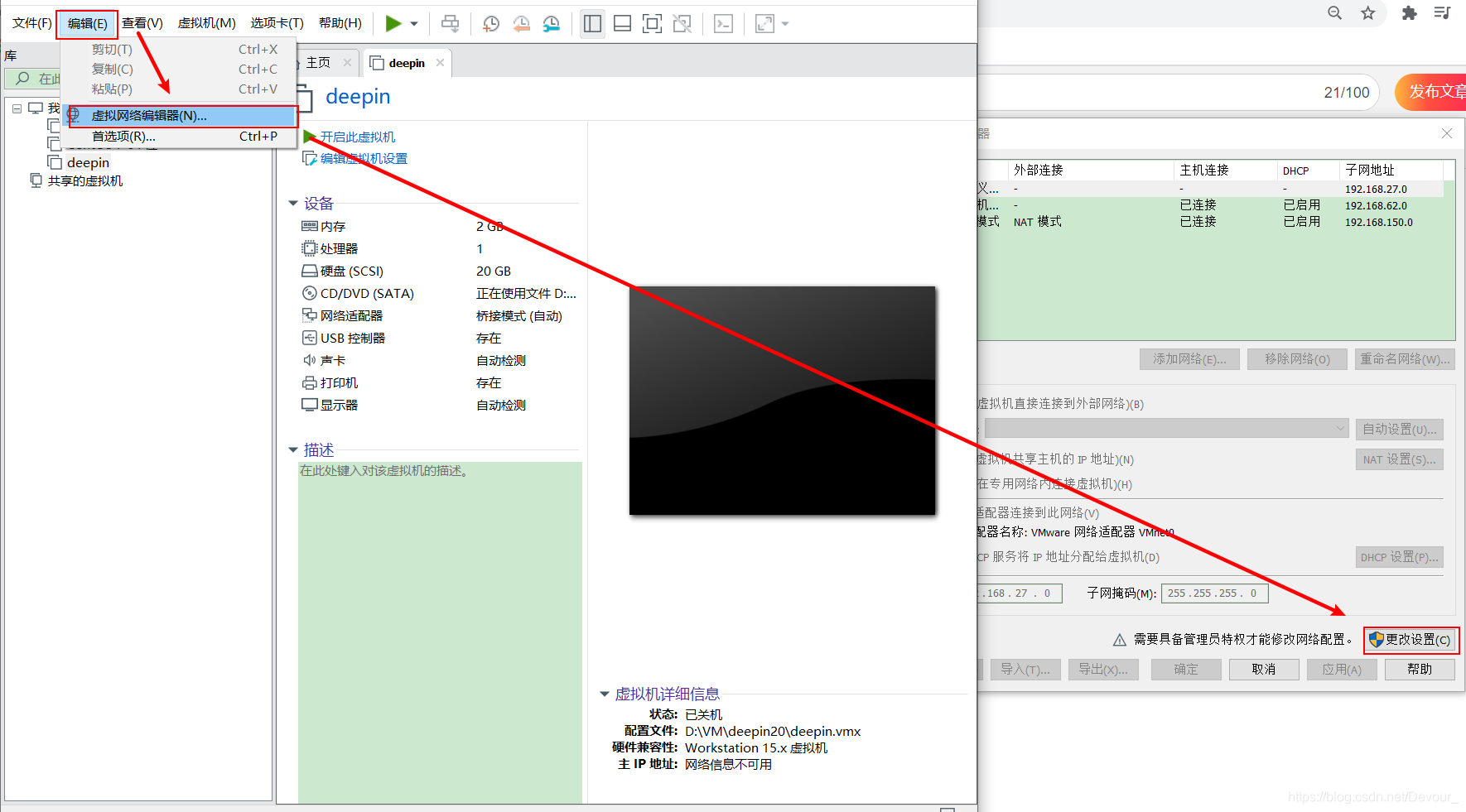 这篇博客记录了在VMwareWorkstation中安装DeepinDesktopCommunity1002-amd64.iso镜像的详细步骤,包括选择桥接模式以确保网络连接。通过虚拟网络编辑器设置桥接模式(VMnet0),安装完成后成功实现了与Internet和本地网络的通信。