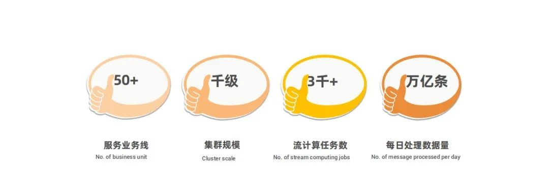 在业务规模方面,目前滴滴流计算服务业务线达到50多个,集群规模在千级别,流计算任务数达到3000+,每天处理的数据量达到万亿条。