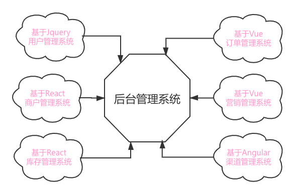 有什么样的方式既可以让各个系统既能单独开发部署,各自选择技术栈,又能紧密联系聚合成一个系统供运营同学和产品同学使用呢,微前端的架构思想应运而生。