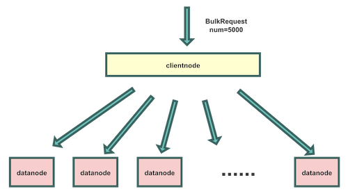 客户端一般是准备好一批数据写入ES,这样能极大减少写入请求的网络交互,使用的是ES的BULK接口,请求名为BulkRequest。这样一批数据写入ES的ClientNode。ClientNode对这一批数据按数据中的routing值进行分发,组装成一批BulkShardRequest请求,发送给每个shard所在的DataNode。发送BulkShardRequest请求是异步的,但是BulkRequest请求需要等待全部BulkShardRequest响应后,再返回客户端。