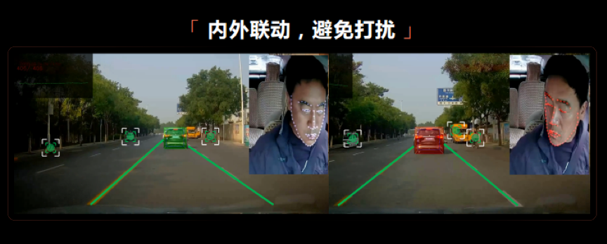 张译杰和团队基于桔视行车记录仪提出了单目标检测框架,除了车辆的碰撞检测,还会兼顾司机的驾驶行为和状态,当司机相对疲劳或有分心,且距离前车过近才会触发重干预提醒。