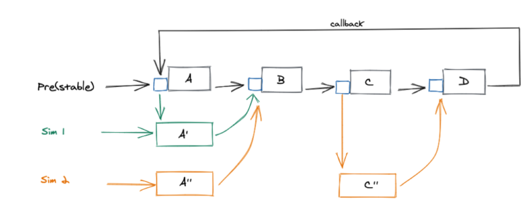 在实践线上仿真环境的过程中遇到过很多问题,其中一个就是流量闭环问题,对于A调B,B调C的串行链路比较好支持,但涉及到A->B->C->A这种回调链路或者A->B->C,A只需要跟C单独联调,跳过B的链路就不行了,无法实现流量的闭环。如果每人部署一套全量环境肯定不现实,所以我们借鉴了一些业界常用的染色和分流方案,以很小的成本就实现了流量闭环。我们没有采用在接入层或者路由层去做流量染色和分流,原因有两方面,一是改动成本较大,二是直连没有经过接入层。最终我们选择了类似Service Mesh中Sidecar方案,在每个业务模块上部署一个代理(只部署在基准环境),所有的染色和流量都在代理上做,通过篡改Traceid实现流量标识和分流(sim001xxxxxxxxxxxxxxx),最终实现了流量闭环。目前成了滴滴主要的联调测试环境,设计如下。