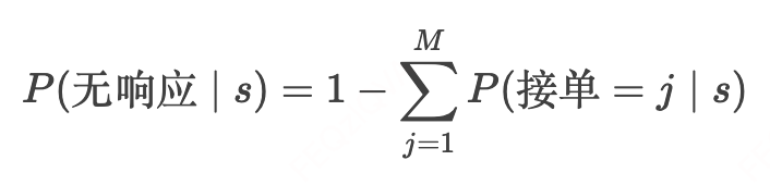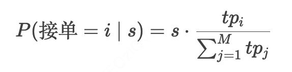为每笔订单分配随机供应因子 s∼U[0,1],设M个RSP的服务能力 (运力数) 分别为 ,第i个RSP接单概率为: