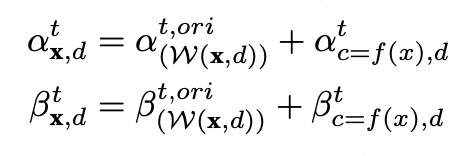 基于此,在可接受的精度损失范围下,我们假设同一类别内的样本具有同质性,因此可以利用第t−1时刻内在每个类别内观测到的我方RSP的被默勾数(服从二项分布),在第t时刻执行贝叶斯后验更新。对每个类别c和折扣券d∈d,记其最新Beta分布参数为 和 。