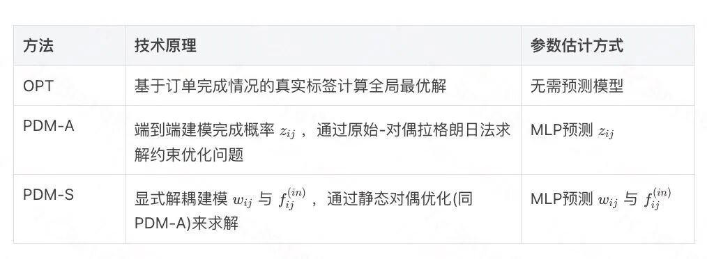 基线PDM-A和PDM-S在相同训练集上求解,测试阶段策略固定不变。OPT则直接在测试集上求解最优解。