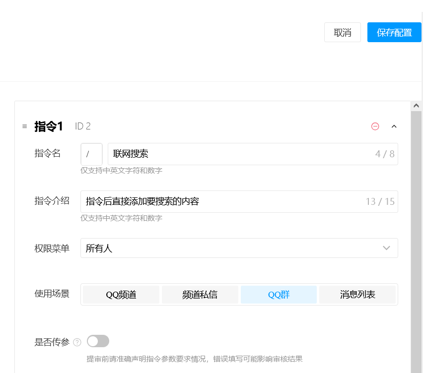 创建好了保存一下就行,这个指令会出现在@机器人之后