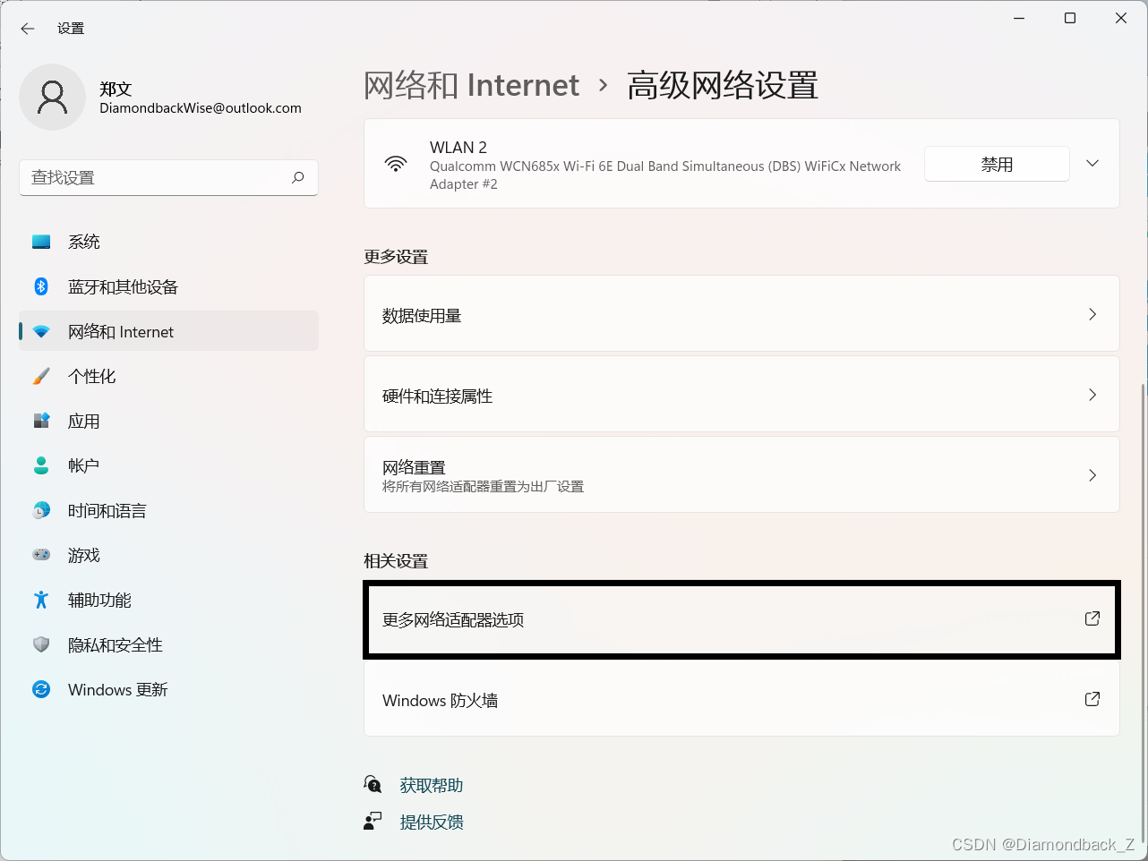 更改适配器选项