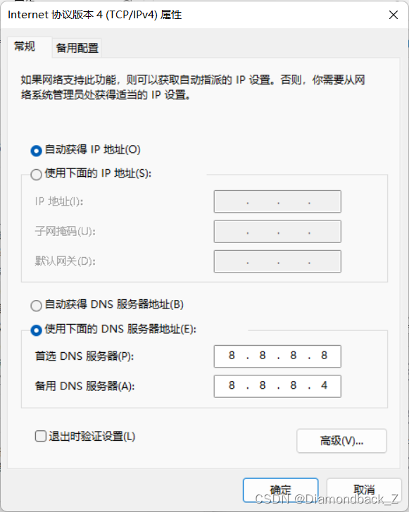 2.修改DNS服务器地址为8.8.8.8和8.8.8.4(以Windows 11为例)