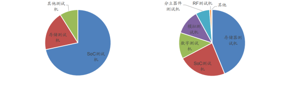 2018年全球ATE市场结构(左)与2018年国内ATE市场结构(右)