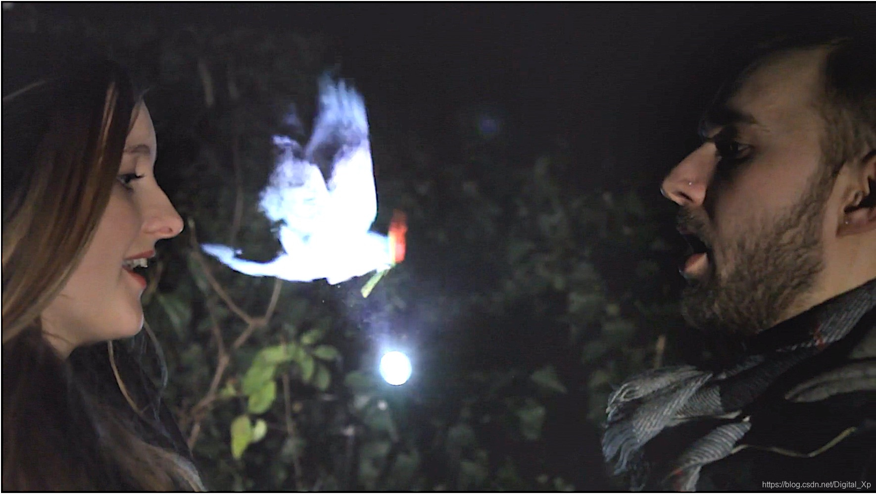 冰天雪地也挡不住这对恋人倾诉自己的爱意,光影让寒冷的呼吸呈现出爱的印记。