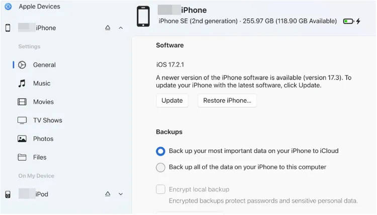 对于更传统的文件传输或设备管理,iTunes 仍然是一个可靠的选择。您可以使用 iTunes 将 iPhone 连接到电脑,然后备份 iPhone、同步音乐以及传输视频和其他数据。