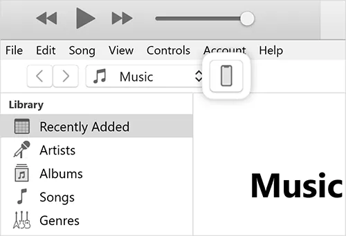 步骤4:您的iPhone图标应出现在iTunes窗口的左上角。单击它即可访问设备的摘要和管理选项。