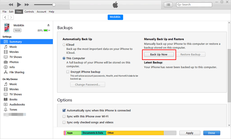 方法 3:通过 iTunes 将 iPad 数据传输到外部硬盘