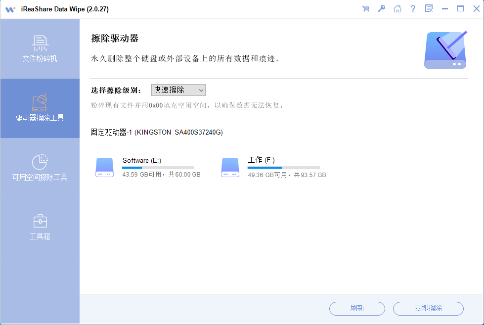 第 1 部分:通过 iReaShare 数据擦除完全覆盖硬盘
