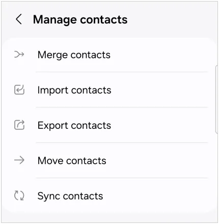 打开手机上的“通讯录”应用,点击菜单图标。然后选择“管理联系人”。
