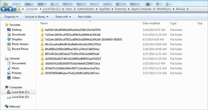 - C:\Users\你的用户名\Application Data\Roaming\Apple Computer\MobileSync\Backup\