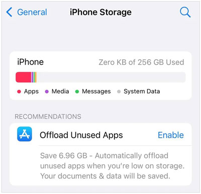 删除大文件:检查您的设置>“通用”>“ iPhone存储”,并删除任何极大的非必要文件,尤其是已备份的大型视频或旧播客。